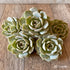 A lovely shape, soft colored seedling with a cluster of tightly packed, medium folded & outer zorged leaves.